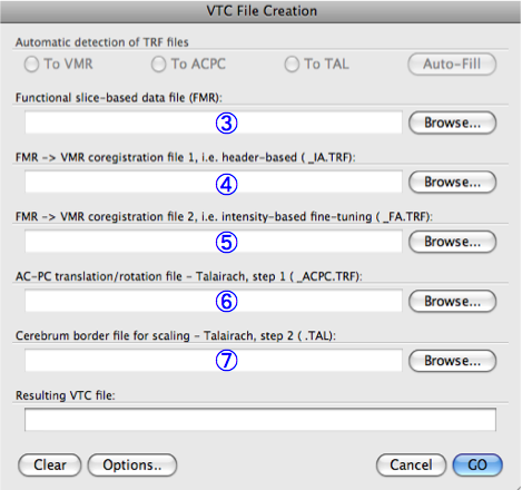 - Select anat.high_Man.trf file for "FMR -> VMR coregistration file 2, i.e. intensity-based fine-tuning (_FA.TRF)".